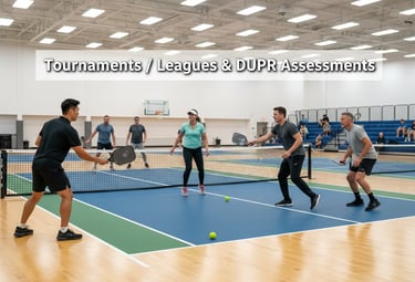 Pickleball coaching, tournaments, leagues, paddle sales, and DUPr assessments.